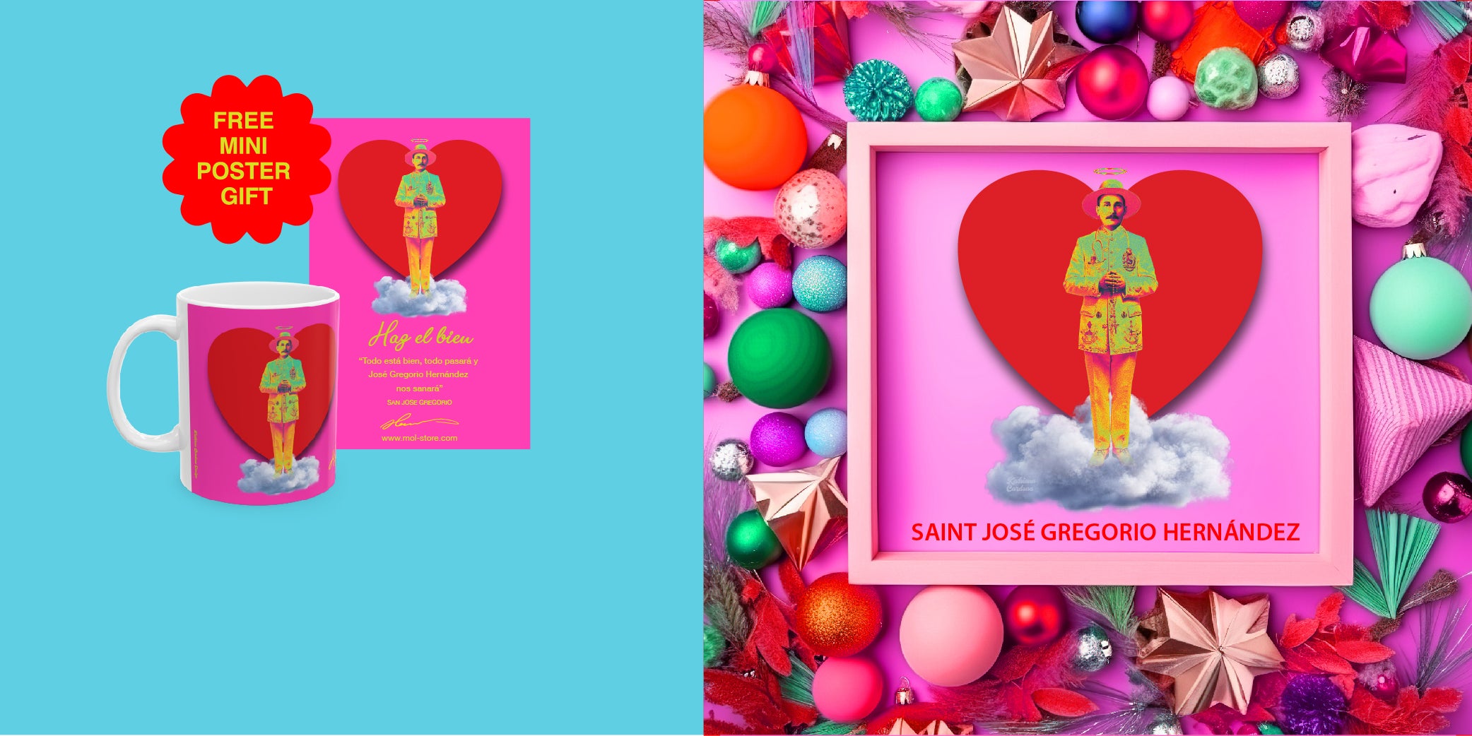 Inspired by the legacy of Saint José Gregorio Hernández, we present a collection of products that carry a piece of his healing spirit. With every mug you purchase, receive a complimentary mini poster with his image and an inspiring message. Visit our website to discover items filled with peace and faith. Through devotion to him, your heart can open to the possibility of a miracle. Let his light guide you… and Do Good.
